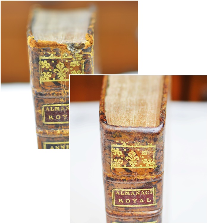 Avant / Après la restauration du dos de la reliure.